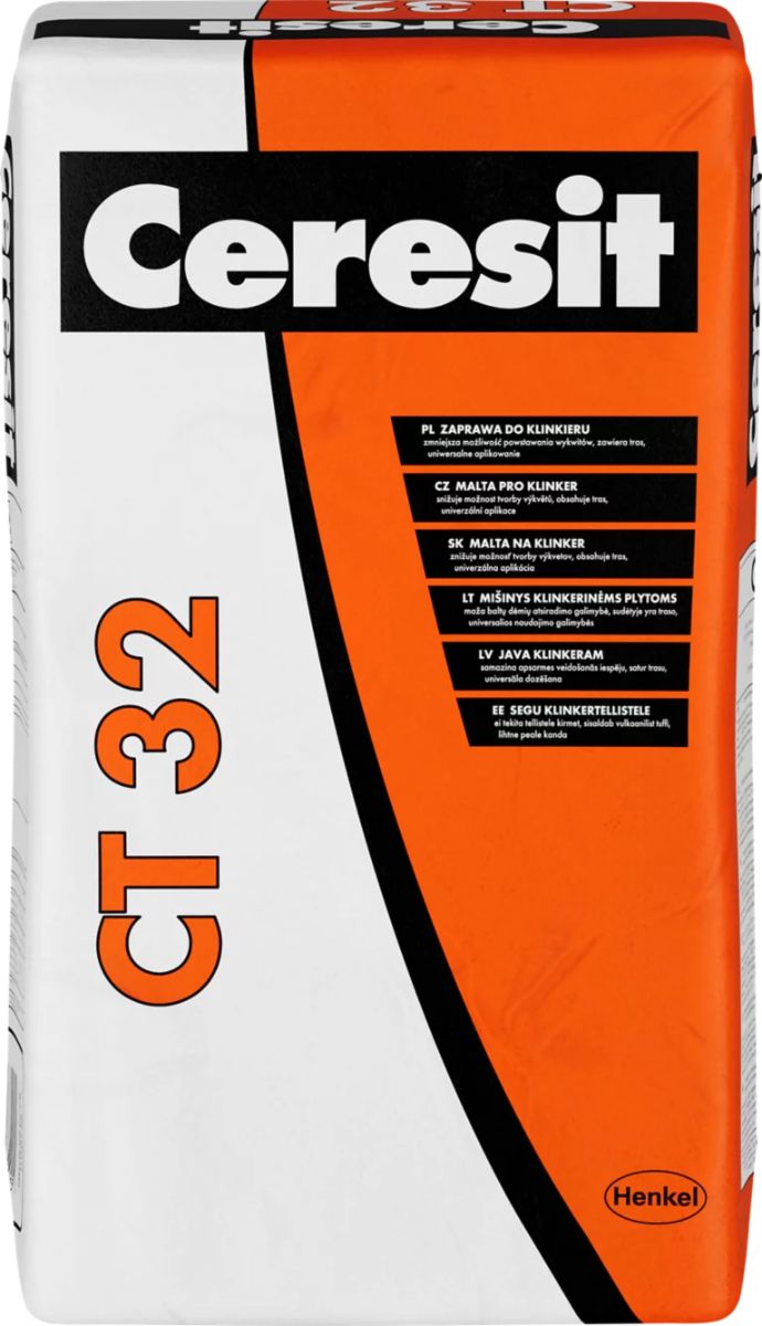 Ceresit CT 32 is a cementitious dry-mix mortar designed for laying and pointing clinker bricks and facing masonry units. The material is formulated with Portland cement, graded mineral fillers and additives to provide controlled workability, reduced efflorescence and durable joint performance. It is used for external brickwork such as façades, boundary walls and fences where consistent joint appearance and weather resistance are required. Suitable for exterior masonry exposed to varying climatic conditions.