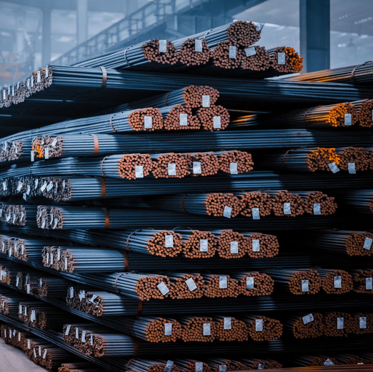 Gulf Steel deformed reinforcement bars manufactured via Thermo-Mechanical Treatment (TMT), supplied in 12 m straight lengths, diameters 8–32 mm. Standards include BS 4449 Grade B500B and ASTM A615 Grade 40/60.